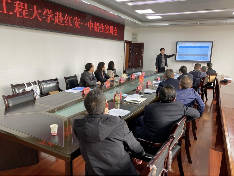 红安一中校领导对学校招生宣传队的到来表示热烈欢迎,并简要介绍了红安一中整体办学情况。徐伟伟、张盛涛分别就历年高考情况和本年度高三学情进行了分析介绍。