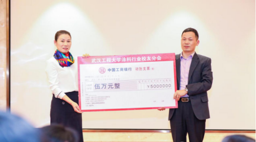 年会上,穿插举行了武汉工程大学涂料行业分会向学校基金会捐赠的仪式,捐款五万元设立“涂料学科特别贡献奖”、“涂料学科优秀学术带领人”、“涂料学科优秀教师”、“涂料学科优秀学子”等奖项。武涂料行业分会秘书长王崇武先生公布了2020年年度基金的捐赠支出及相关奖项的获奖名单。