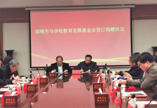 基金会秘书长邓新洲代表学校教育发展基金会与湖北振华化学股份有限公司董事长蔡再华签订了捐赠协议书。