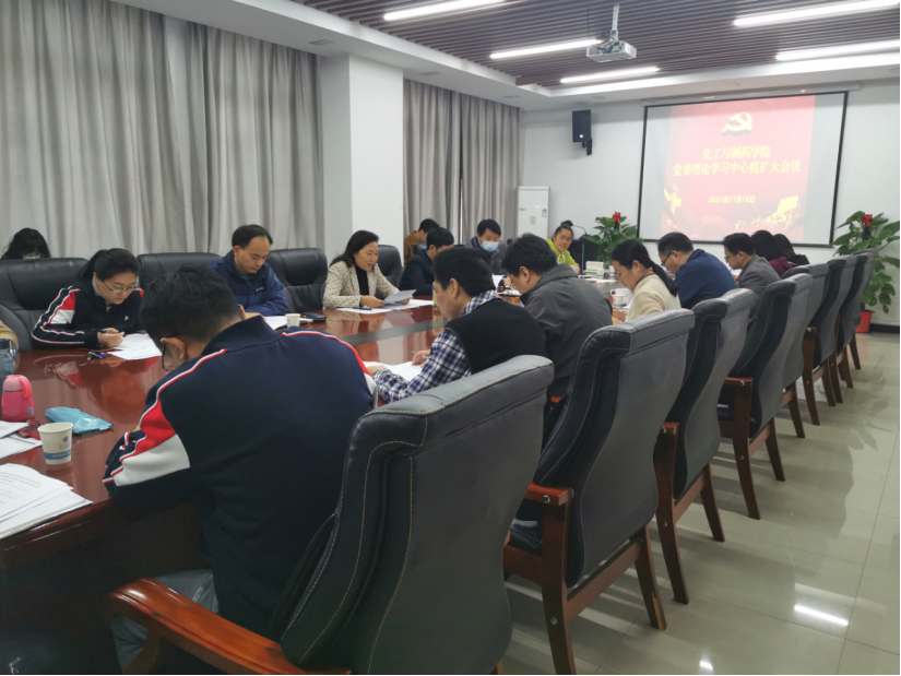本网讯(通讯员 沈霁月)11月18日上午,化工与制药学院在化工大楼605会议室召开党委理论学习中心组(扩大)会议,专题学习党的十九届六中全会精神、习近平总书记在中央人才工作会议上的重要讲话等内容,学院领导班子成员、党支部书记、各系(中心)主任参加了学习活动。会议由学院党委书记王雪梅主持。