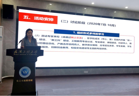 会上,学院党委书记王雪梅首先传达了学校召开“十四五”事业发展规划编制工作暨教育思想大讨论会议相关精神,解读了《化工与制药学院教育思想大讨论活动实施方案》,从指导思想、主要目标、基本原则、讨论专题、活动安排、组织保障等六个方面针对性的进行了全方位介绍。