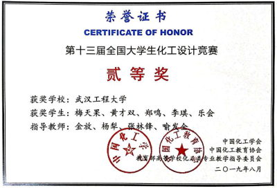 2016级3支团队在全国总决赛中经过激烈的答辩角逐,凭借扎实的专业基础和良好的工程教育素养,分别获得了全国大学生制药工程设计竞赛一等奖、全国大学生化工设计竞赛国家二等奖、三等奖。