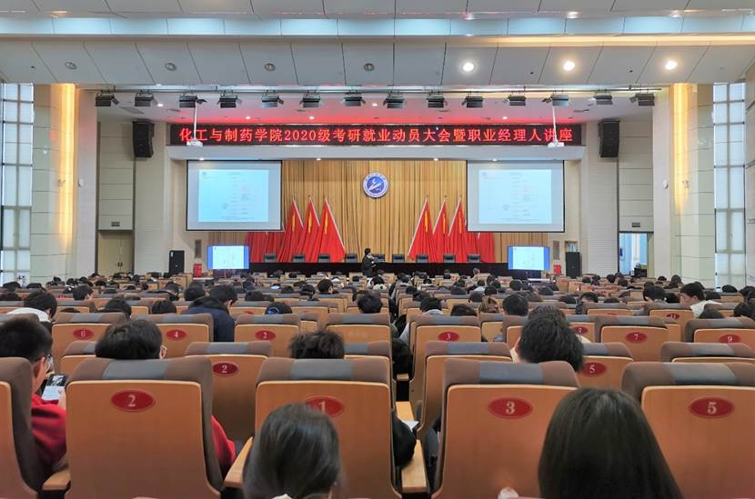 本网讯(通讯员 冯婧)4月6日下午,化工与制药学院在四教多功能报告厅召开2020级考研就业动员大会暨职业经理人讲座。武汉江汉化工设计有限公司总经理助理李飞阔,校研究生工作部副部长、研究生院副院长陈俊,校招生与就业处副处长田勇,化工与制药学院副院长龙思会、2020级辅导员及2020级全体学生参加本次大会。会议由学院党委副书记周丹主持。