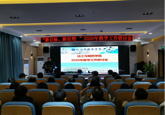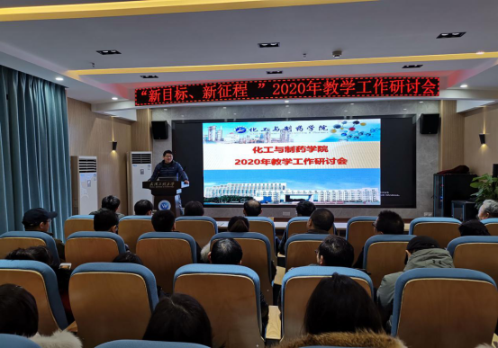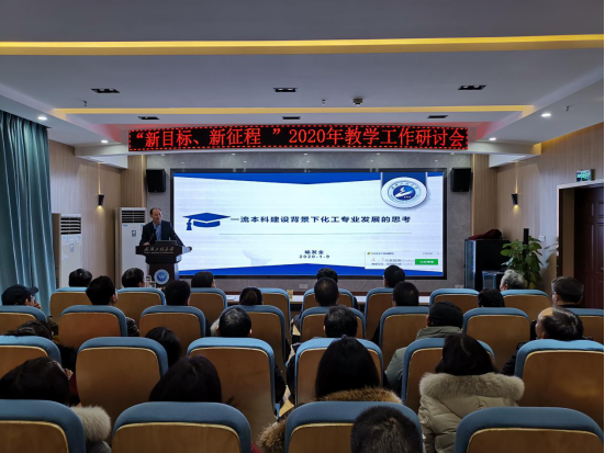本网讯(通讯员 高友智)1月9日上午,化工与制药学院在化工大楼多功能报告厅召开“新目标、新征程”2020年本科教学工作研讨会。学校教学质量监控与评估中心、教师发展中心主任孙先明,教务处副处长杨克平应邀出席。学院党委书记王雪梅、副院长(主持工作)汪铁林、副院长龙思会、金放出席了会议。会议由学院教学副院长金放主持,学院各系(中心)正副主任、专业负责人、课程负责人、骨干教师代表共计四十余人齐聚一堂,以高度的责任感和使命感,谋划新时期学院教学改革发展大计。