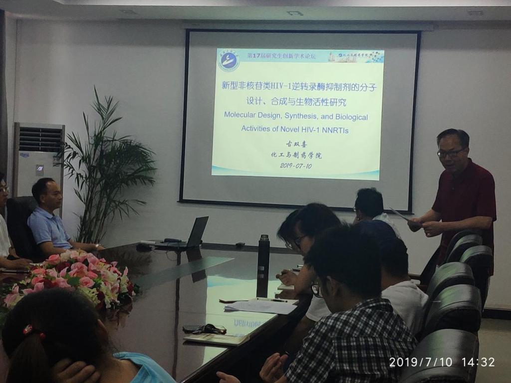 7月10日下午,应化工与制药学院,绿色化工过程教育部重点实验室,湖北省新型反应器与绿色化学工艺重点实验室邀请,武汉工程大学大学化工与制药学院古双喜博士在流芳校区化工大楼605会议室作了一场题为“Molecular Design, Synthesis, and Biological Activities of Novel HIV-1 NNRTIs”的学术报告。报告会由化工与制药学院副院长龙思会教授主持,化工与制药学院师生100余人聆听了报告。
