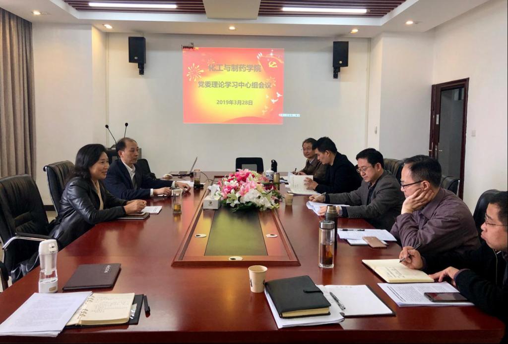本网讯(通讯员 朱雪洁)3月28日上午,化工与制药学院党委理论学习中心组在学院606会议室召开学习会,专题学习了习近平总书记在改革开放40周年大会上的讲话精神和在学校思想政治理论课教师座谈会上的讲话精神,会议由学院党委书记王雪梅主持,学院全体党委中心组成员参加了本次学习活动。
