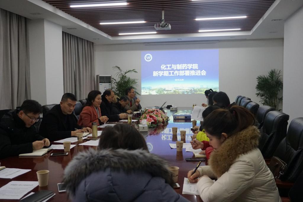 本网讯(通讯员 周丹)新学年、新气象、新规划。2月28日,化工与制药学院召开2019年新学期工作部署推进会,总结分析2018年工作,安排部署2019年重点工作,振奋精神、凝心聚力、明确目标,确保开学各项工作迅速进入状态。会议由院党委书记王雪梅主持。学院领导班子,各中心主任、副主任,支部书记、副书记参加了会议。