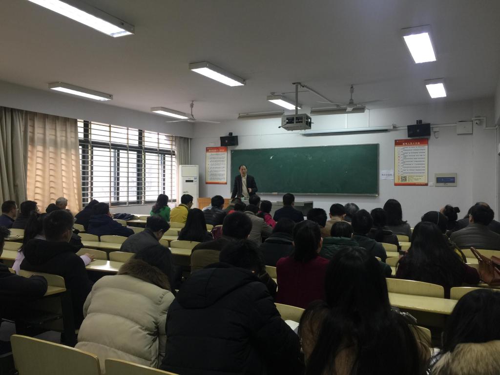 喻发全院长介绍了学院调整后的总体现状,回顾了学院2017年的工作,重点总结了学院学科建设的成绩,并对学院教职工提出了要求和希望。2017年,学院在本科教学审核评估、第四轮学科评估、全国化工专业排名、制药工程专业工程教育认证等工作中,取得了较为突出的成绩,离不开全院师生的共同努力。喻院长表示,2018年学院调整后,将面临新的机遇和新的挑战,希望全院师生群策群力,形成“人人讲奉献,个个比成绩;人人讲学术,个个谈质量”的学术氛围。