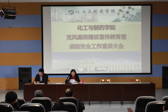 4月13日下午,化工与制药学院在文科楼313举行了党风廉政建设宣传教育暨消防安全工作宣讲大会,会议由学院党委副书记田勇主持,全院教职工参加了大会。