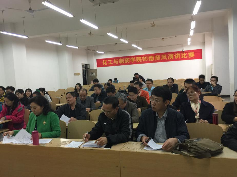 为全面推进学院人文素质教育和教育教学水平,加快建设一支师德高尚、业务精湛、素质全面、充满活力的高水平教师队伍,提升广大教职工履职尽责,爱岗敬业,以生为本,立德树人的责任意识,深化践行“两学一做”学习教育活动。化工与制药学院于10月13日举办了以“学高为师 德高为范”为主题的青年教师师德师风演讲比赛。