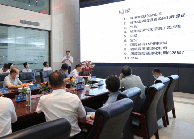在圣元环保有限公司技术总监王铁军等陪同下,古双喜一行前往生产厂区实地参观了垃圾发电项目、餐厨垃圾资源化处理厂生产一线,察看了生物质制甲烷制氢示范项目中央控制室等区域,详细听取关于垃圾焚烧及餐厨垃圾的处理工艺、规模、项目运营以及餐厨垃圾收集转运等情况的介绍,并就一些技术问题进行了探讨。
