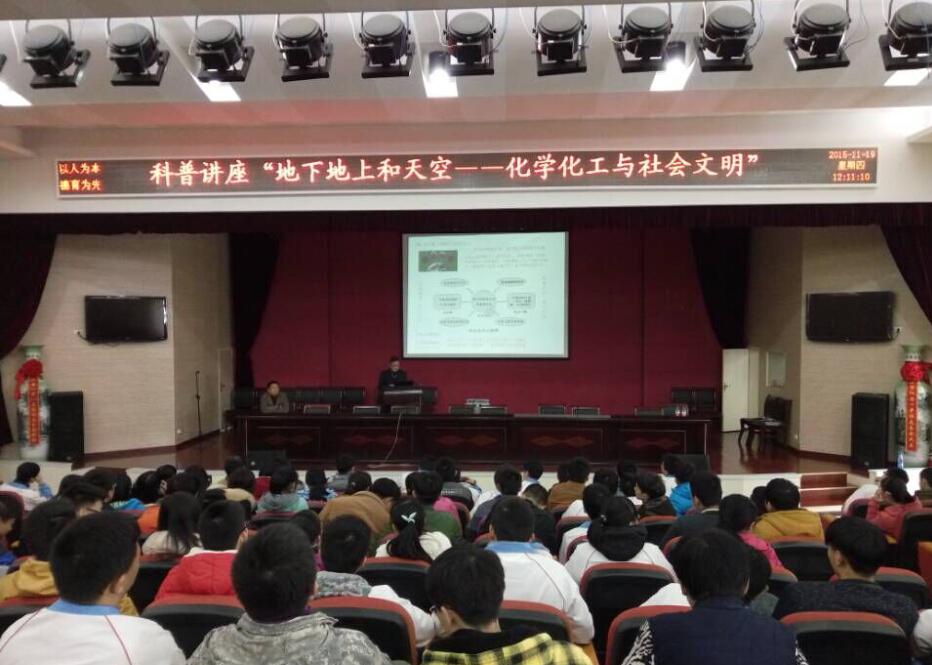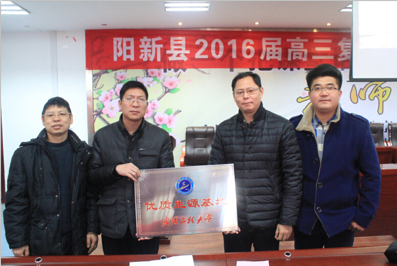 12月8日,由湖北省新型反应器与绿色化学工艺重点实验室副主任郭嘉教授、学报编辑部张瑞老师、化工与制药学院许守飞老师组成的招生宣传组赴阳新一中开展招生宣传。在与阳新一中校领导和高三年级班主任举行的座谈会上,招生宣传组介绍了学校的历史沿革、学科建设、教学工作、科学研究、专业设置、招生政策等有关情况,并欢迎阳新一中同学报考武汉工程大学。随后,招生宣传组在阳新一中举行了优质生源基地挂牌仪式,郭嘉教授向200余名师生代表做了题为“化学工业和你、我、TA”的科普知识专题报告,让高中生对化学化工有了更为深刻的认识。