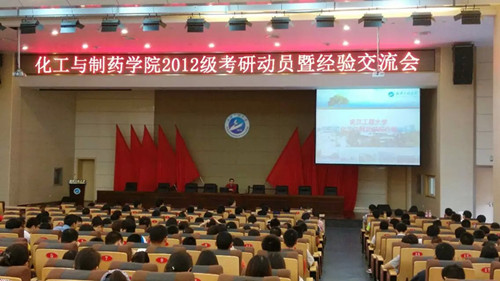 5月6日下午,化工与制药学院2012级考研动员暨经验交流会在流芳校区四教多功能报告厅举行。学院党委副书记夏志敏老师,省重点实验室副主任汪锋教授、学院各人才培养中心龙思会教授、金放教授、胡国元教授、学生工作办公室主任郑冬洁老师、学院2011级考研优秀学生代表以及2012级300余名学生参加了大会,会议由2012级辅导员周磊主持。