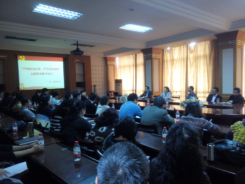 4月23日下午,化工与制药学院在武昌校区科教大楼九楼会议室开展了“严明政治纪律、严守政治规矩”主题教育集中学习活动。学院全体教职工党员参加了学习。本次活动由学院党委书记王雪梅主持。