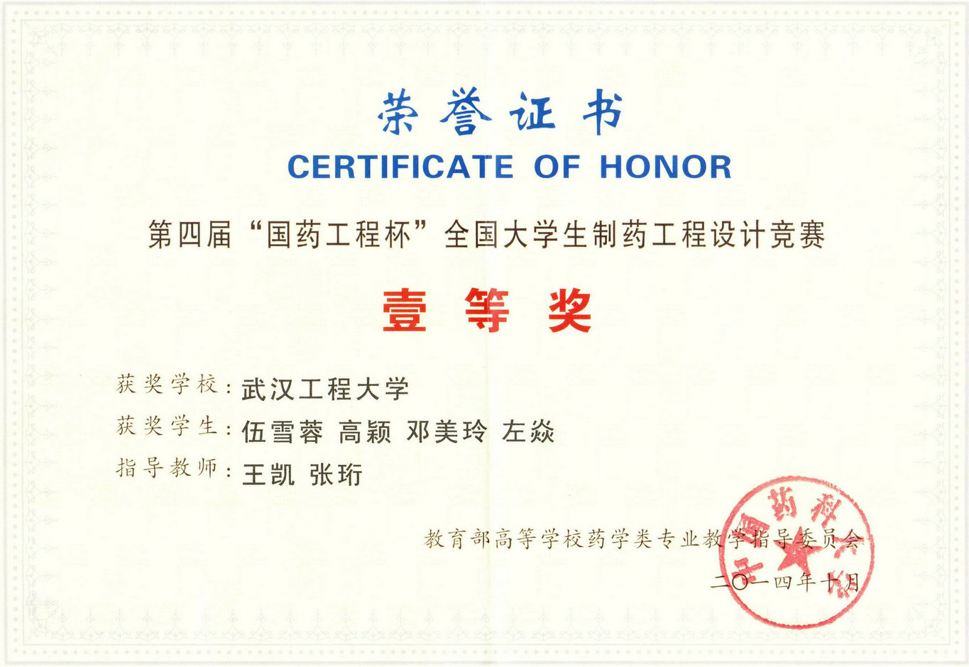 在历届全国大学生制药工程设计竞赛中取得最的好成绩,实现了一等奖的零突破。