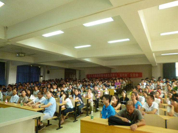 9月4日下午,化工与制药学院与新生家长“面对面”交流会在流芳校区一教学楼1119教室举行,党委书记王雪梅、院长喻发全、院党委副书记夏志敏、副院长郭嘉、副院长田琦峰、省重点实验室副主任汪锋以及学院2014级辅导员、班主任参加交流会,与学院250余名新生及家长展开了面对面交流。