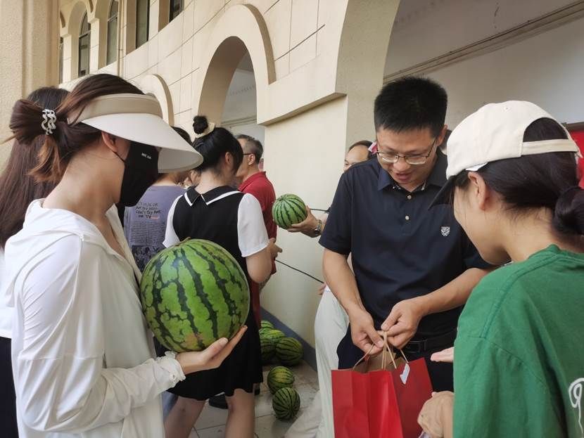 “在骄阳似火的季节,学院领导老师主动为学生着想,不仅给我们送来了酷暑必备的西瓜与饮料,还精心准备了加油大礼包,让我感受到了老师们的热情和关爱,给我们备战考研注入了全新动力!”2020级化卓班学生卢骏宇和2020级智能化工02班樊羽林真诚地说。