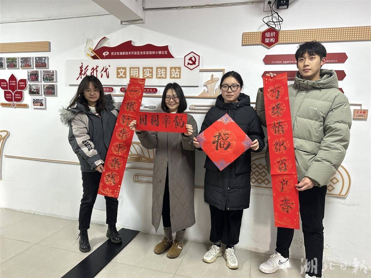 活动不仅为社区送来春联、福字,来自武汉工程大学的同学们还拿着扫帚、铲子等工具,仔细地清理了路面上的垃圾和杂物,不放过任何一个角落,学生们的辛勤劳动得到了社区居民的高度赞扬和肯定。参与活动的贺思璐同学表示,此次活动不仅仅提供了一个展示才华的平台,还在实践中体会到了中华传统文化的博大精深,感受到了浓厚的节日氛围。