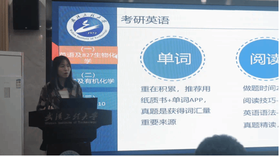 4月30日上午,学院邀请2017级精细化工专业刘金辉在西北区1号楼110会议室立志考华南理工大学的学生注入“强心剂”,他从考研准备、考研复试、华理工三年研究生生活和华理工学生就业情况等几个方面给同学们生动形象地描绘了未来的奋斗历程。