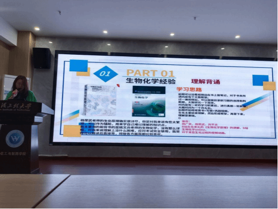 4月29日下午,学院邀请化学与环境工程学院工业分析专业张美伦在西北区1号楼202会议室开展化学专场考研经验分享会,她从考研院校选择、专业课复习规划以及考研心态几个方面给学弟学妹们进行全面细致分享,给不考数学的21级学生提供了精准指导。