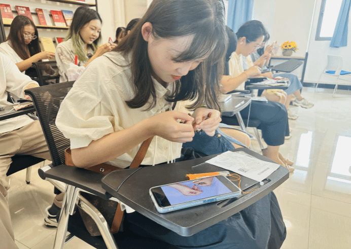 经过缝制、填充、定型、穿珠等步骤,大家将浓浓情意与祝福缝进香囊之中,巧手缝制的香囊或悦己或赠人,一针一线间蕴含着柔情与温度。