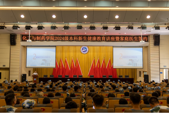 本网讯 (通讯员 张锦 翟森稳)9月15日上午,化工与制药学院联合校医院在四教多功能报告厅举行2024级本科新生健康教育讲座暨家庭医生签约活动。校医院公共卫生科熊玉莲主任、第三家庭医生团队成员,学院新生辅导员张锦、翟森稳以及2024级全体本科新生参加了本次活动。