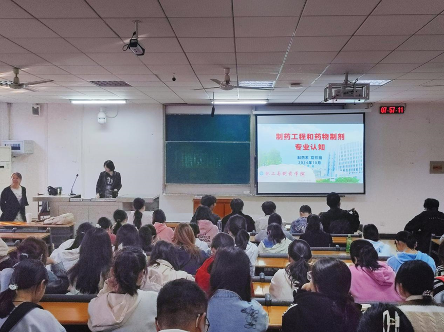 本网讯(通讯员 翟森稳 张锦)为深化学生对专业领域的理解,拓宽学术视野,激发创新思维,近日,化工与制药学院举行2024级本科生专业认知讲座。化工系主任熊芸,制药系主任葛燕丽、副主任冯菊红,能源化工系主任陆小军受邀担任主讲嘉宾,2024级全体本科生分专业参加了专业认知讲座。