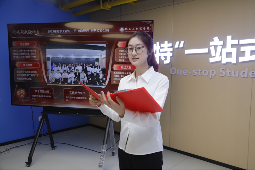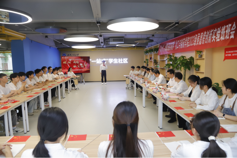 本网讯(通讯员 蓝传祺 张小琪)4月24日下午,校党委书记汪伟在学校“一站式”学生社区参加化工与制药学院2023级化学工程与工艺(侯德榜创新实验)01班“破‘化’成蝶 砺实筑梦”主题班会。班会由2023级侯班班长付佶主持。