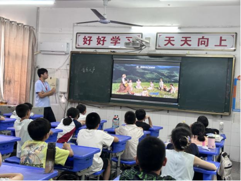 实践团成员依托各类教学资源,精心打造音乐特色课程。团队成员创新性地将经典电影《音乐之声》融入教学,选取《音乐之声》中《Do-Re-Mi》《雪绒花》等经典曲目对应的电影片段进行播放,借助影片中生动的场景与旋律,引导孩子们进入音乐情境。