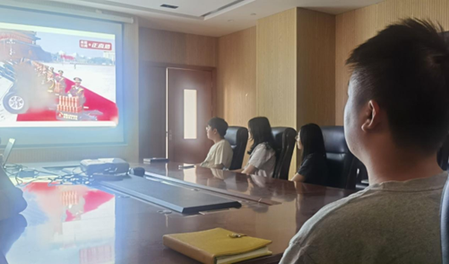 本网讯(通讯员 常琬笛)9月3日上午9时,北京天安门广场举行纪念中国人民抗日战争暨世界反法西斯战争胜利80周年大会。化工与制药学院组织全院师生通过线上线下相结合的方式同步观礼。学院120余名师生代表在大化工楼610会议室集体收看直播,其他师生通过线上平台参与观礼,共同见证人民军队威武雄壮的气魄,感受中华民族团结奋进的力量,坚定砥砺前行的信心与决心。