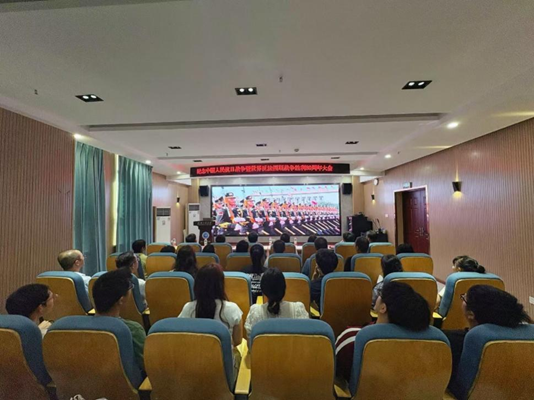 师生们自发起立,挥舞国旗,齐声歌唱,掌声经久不息。线上线下共同迸发出铭记历史、强国有我的时代强音。这场跨越时空的集体观礼,既是对抗战精神的庄严传承,更凝聚起化药师生科技报国的奋进力量。
