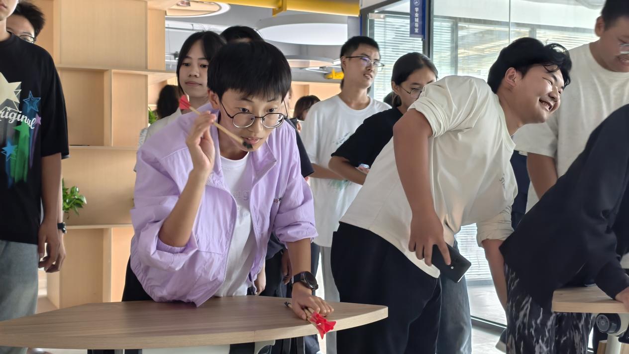 在投壶环节,活动气氛瞬间被点燃。50余名同学分成四组,每组推选代表轮番上阵。大家凝神定气、瞄准箭壶,羽箭破空而去,现场喝彩声此起彼伏。最终按照每组的投中总数排名,并为优胜队伍颁发了惊喜奖励。同学们竞技中收获了团结与快乐,为活动增添了浓浓的节日氛围。