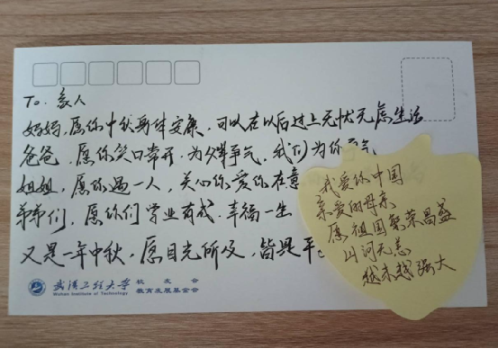 活动中,张列罡为同学们带来了中秋文化小课堂,从节日起源到经典传说,让大家在聊天与分享中收获知识。同学们也纷纷分享了自己与中秋的趣味小故事,在工大明信片上写下对家人与室友的中秋祝福,并第一时间把这份心意发给了远方的家人和身边的室友。