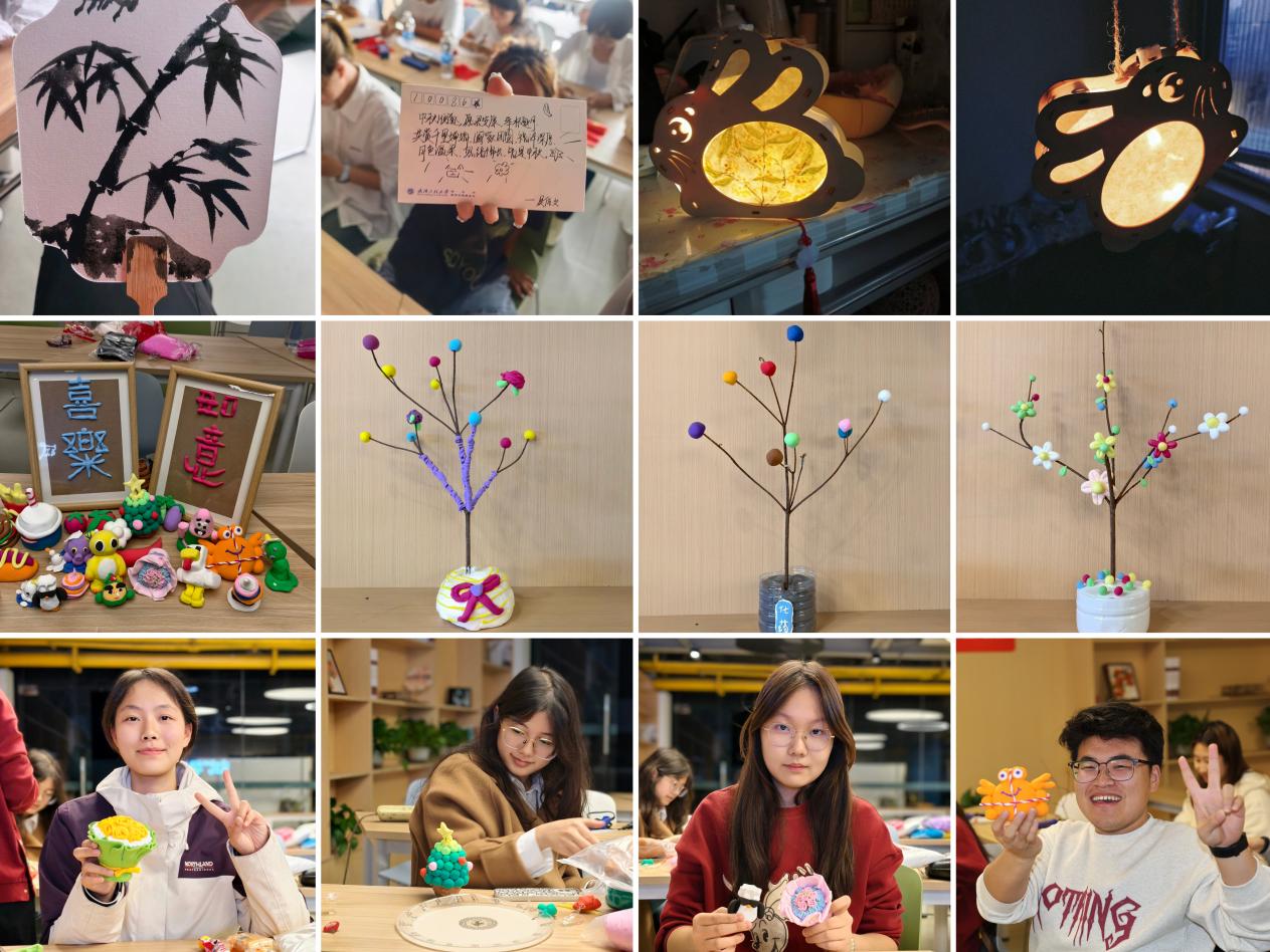 三是传承非遗文化,以美传情,厚植文化自信底蕴。学院深挖中华优秀传统文化与非遗技艺内涵,依托中秋等传统节日,同学们在节庆氛围中感受文化魅力、增强文化自信。通过“手绘团圆灯,投壶话中秋”、“纸承雅韵,美启新思”剪纸、“泥趣传情,美育育心”轻粘土体验等活动,让学生们在动手实践、沉浸参与、过程中激发创意灵感、感受中华传统美学的独特魅力,推动中华优秀传统文化在青年一代中活态传承。