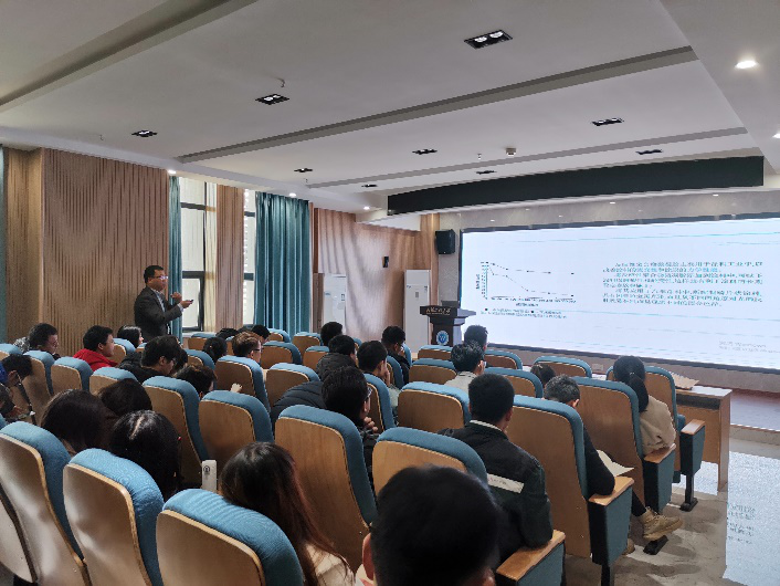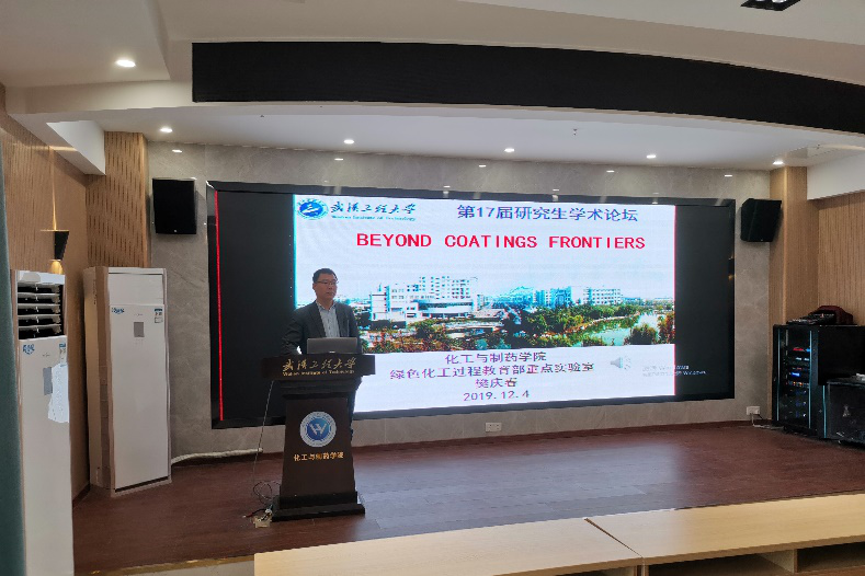 本网讯(通讯员 高友智 )12月4日上午,应化工与制药学院,绿色化工过程教育部重点实验室,湖北省新型反应器与绿色化学工艺重点实验室邀请,武汉工程大学樊庆春副教授在流芳校区大化工楼多功能报告厅做了一场题为“Beyond Coatings Frontiers”的学术报告,报告会由化工与制药学院副院长龙思会教授主持,化工与制药学院100余人聆听了报告。
