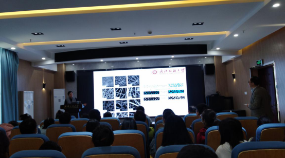 报告开始,崔莉教授向大家介绍了生物纤维的三个研究方向:生物医用材料、功能纤维织物、生物质纤维。并且介绍了该课题研究的背景,从而引出研究思路:能否从海洋资源丰富的多糖类动植物中提取多糖进而加工成纺织纤维。接下来崔教授向大家介绍了湿法纺丝的工艺流程,特别是凝固浴的重要性。接着将海藻酸纤维的各项性能与棉纤维等普通纤维比较。接下来介绍了将海藻酸与对pH敏感的天然染料相结合的巧妙方法,通过对纤维敷料的pH值变化的监测实现对伤口愈合状况的检查。接下来还介绍了聚乳酸纤维在纺织领域的应用以及其各项良好的性能,以及熔体纺丝的各项影响因素。最后介绍了废旧棉织物的高值利用途径。