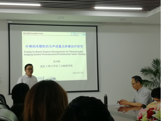 7月3日下午,应化工与制药学院,绿色化工过程教育部重点实验室,湖北省新型反应器与绿色化学工艺重点实验室邀请,武汉工程大学化工与制药学院吴风收博士在流芳校区化工大楼604会议室作了一场题为“Porphyrin-Based Organic Nanoparticles for Photoacoustic Imaging-Guided Photodynamic/Photothermal Tumor Therapy”的学术报告。报告会由化工与制药学院副院长龙思会教授主持,化工与制药学院师生近100余人聆听了报告。