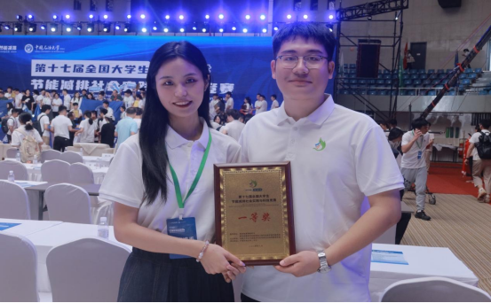 本网讯(通讯员 汪喆伦)8月4日至7日,第十七届全国大学生节能减排社会实践与科技竞赛决赛在中国石油大学(华东)隆重举行。武汉工程大学斩获一等奖5项、二等奖2项、三等奖4 项,并荣获优秀组织奖,一等奖数量、获奖总数均排名全国高校前列。其中,作为学校唯一参赛的研究生团队,化工与制药学院以项目《以碳之塑—CO₂基生物可降解聚碳酸酯工艺》脱颖而出,实现了正妹